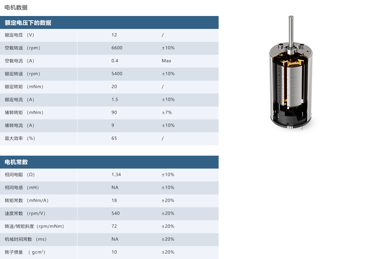 轉矩常數:18±20% mNm/A