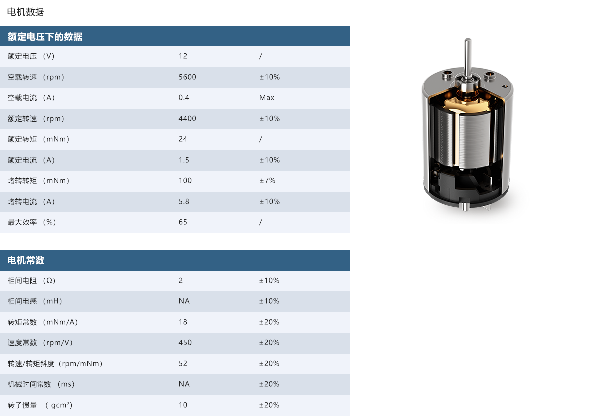 轉矩常數:18±20% mNm/A
