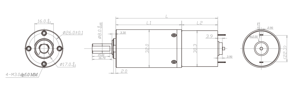 齒輪箱長度L1(mm) 25.7 35.7 45.7 55.7